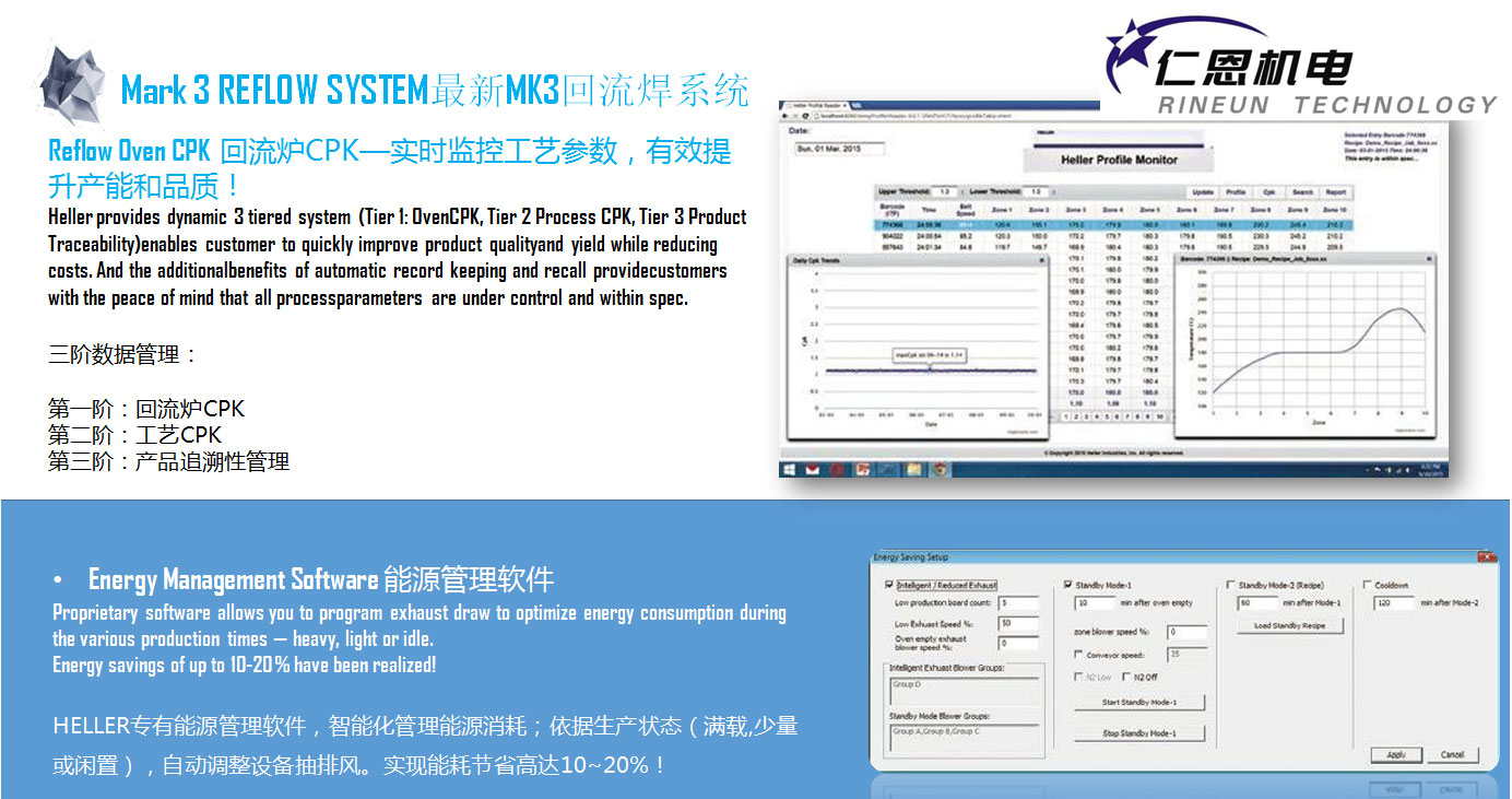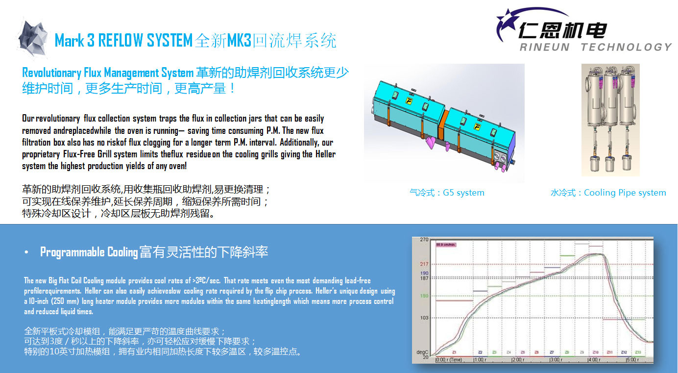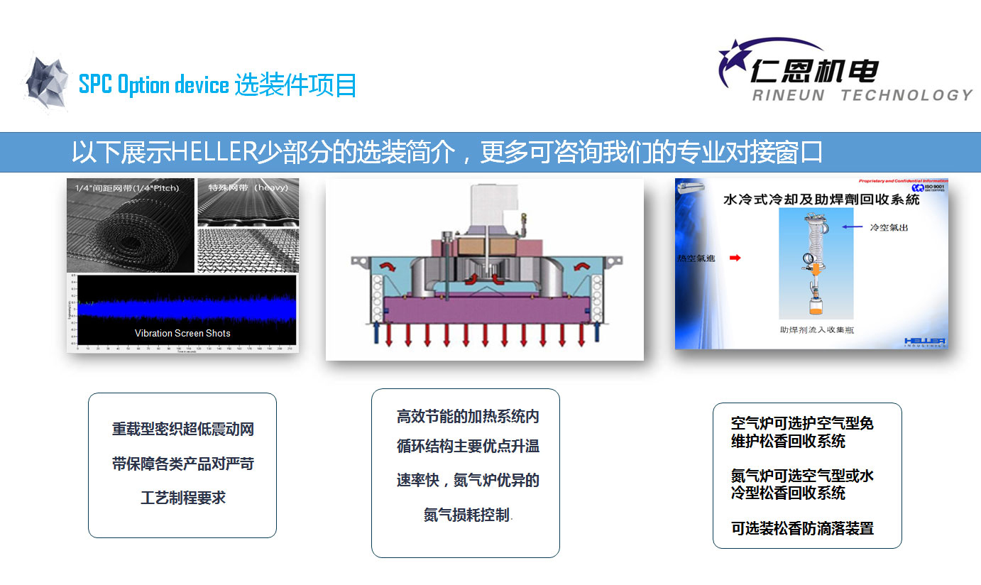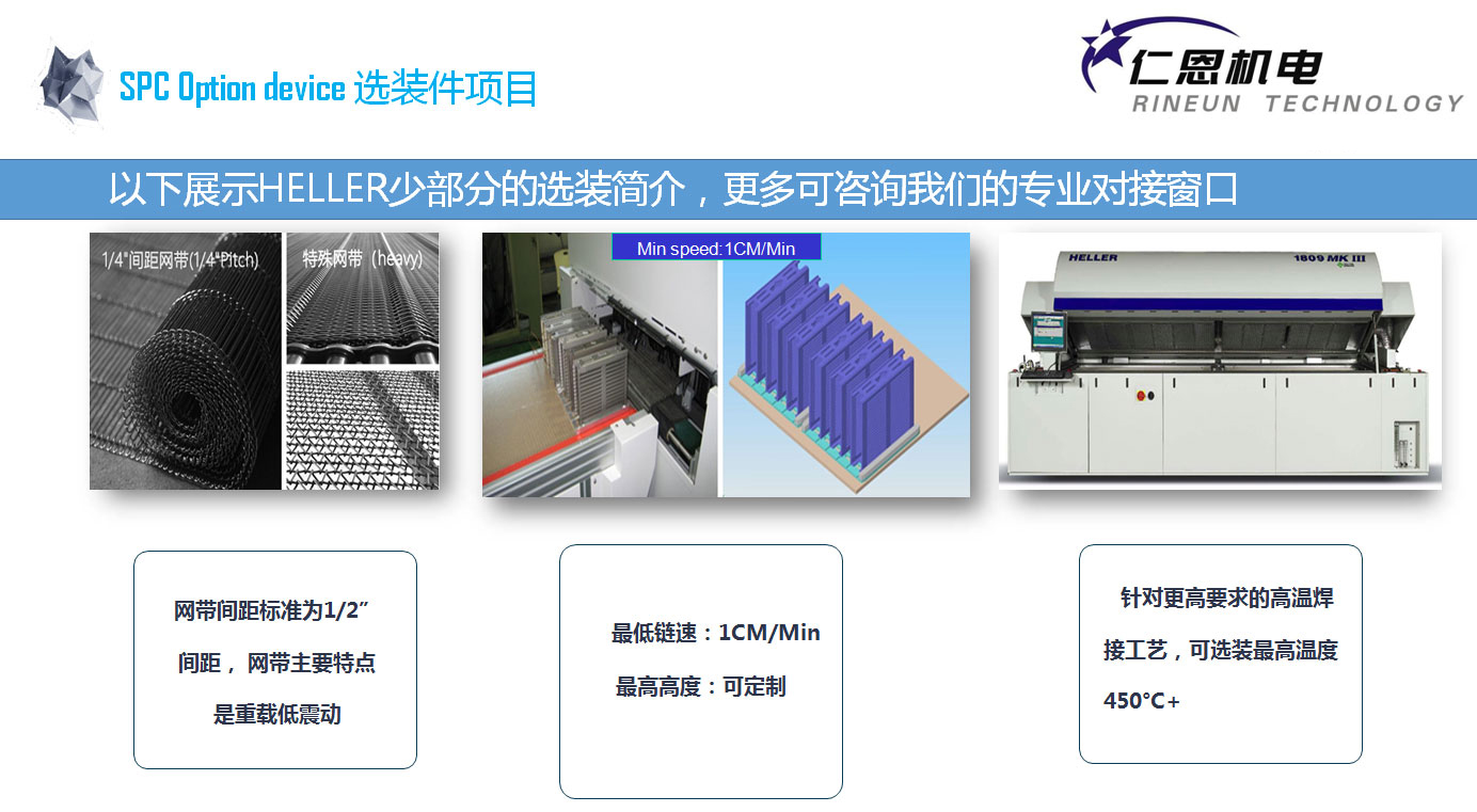 HELLER 高温定制水平回流焊适用于特殊加热工艺需求的450°C高温设备,增强型加热器模块,叶轮直径增大40%,用热毯覆盖PCB,以在坚硬的板上实现较低的Ts值;较高可减少氮气消耗40%