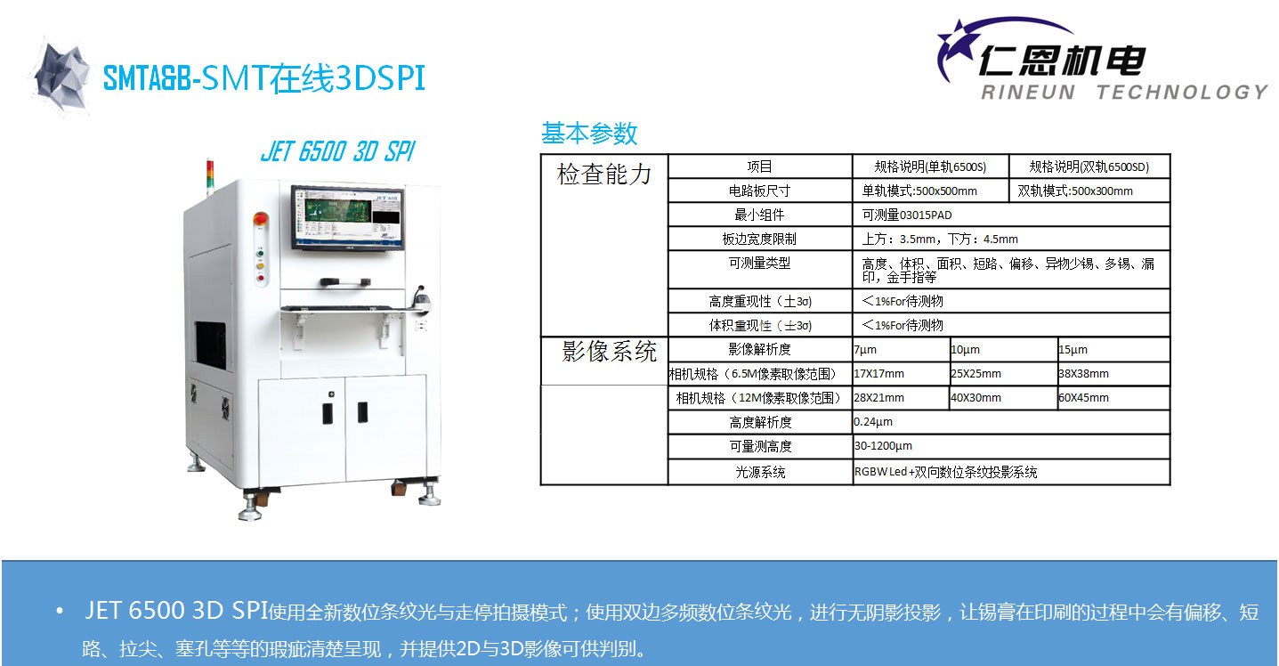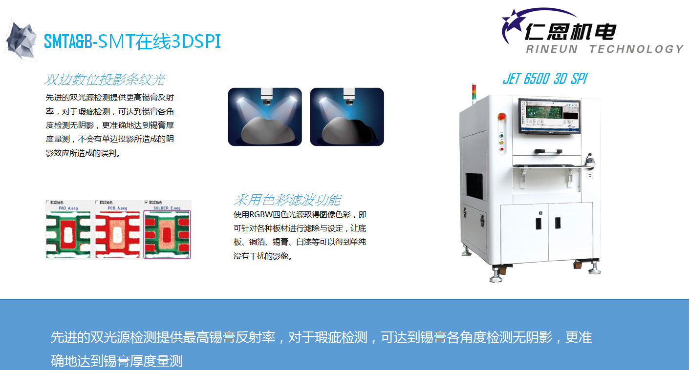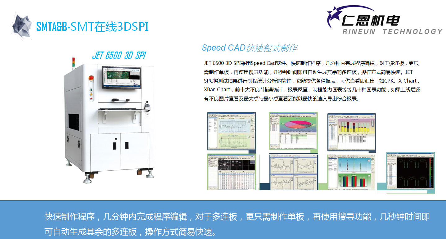 在线3DSPI 锡膏厚度检查机 双边数位投影修致光的3D锡膏测量,功能强大的SPC报表分析软件,Speed CAD快游程式制作,多连板定位功能。